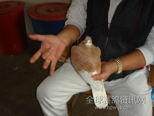 (图三)中国鸽网来访时,也拍了一些这类的照片。被无知的网友说:又不是残废干嘛单手持鸽?因为这些网友根本就不是鸽友,不予理会!
