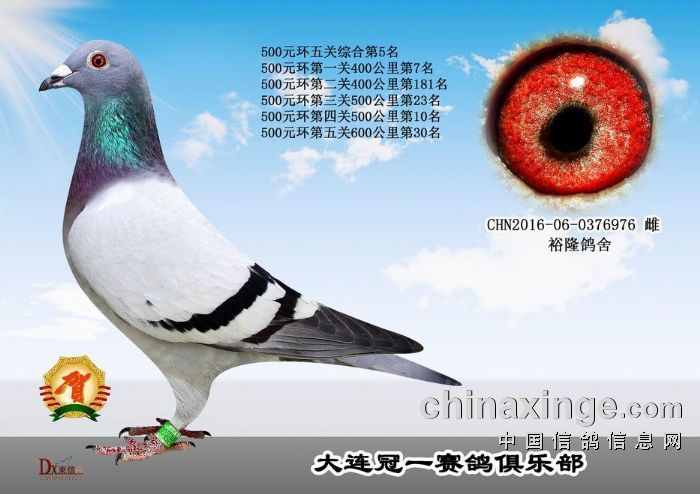 感谢皇家连队张总和东海李总 支援种鸽作出 16年冠一俱乐部五关综合5名