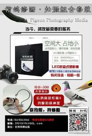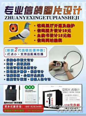 *信鸽图片设计 *血统书设计 *代理:信鸽摄影灯箱、第二代鸽眼拍摄神器 *中信网(铭鸽展厅资料整理) *国旗私人定制 各种图文设计信鸽网站编辑,铭鸽展厅开通及维护,网页设计,广告发布,媒体运营,平面设计制作(名片,广告牌,海报,宣传页,展架,数码照片精修等),鸽展设计策划,赛鸽人物专访,视频录制,公棚开业庆典等媒体服务。 (照片的质量取决于您手机的像素,手机像素不得低于1300万。否则修出的效果不佳。) 微信18618263466 QQ:390105196