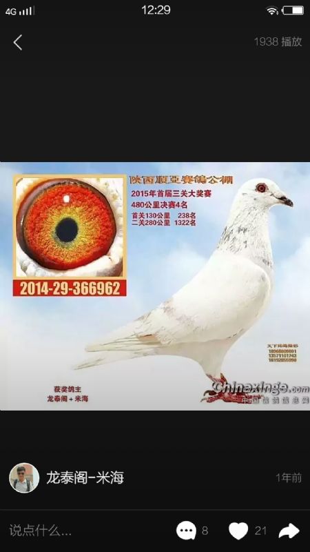 从小就喜欢鸽子,2014年起棚正式开始养鸽子打公棚参赛,特别感谢黄河公棚袁总支援种鸽,龙泰阁米海支援种鸽,本舍主要以戈马力,詹森,利奥003,超级73,桑杰士,盖比,菲利普吉尔特,种鸽10只。鸽子不多,血统也杂。