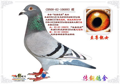 传钢鸽舍02年建棚养鸽,有幸结识天津登林鸽舍张登林先生,登林鸽舍支援多羽超级种鸽。通过这些年的辛酸苦辣、终于培育出几路超级配对,使本舍近两年的比赛成绩辉煌,尤其在2004年春季的天津市400公里大奖赛中,勇夺5342羽总冠军!并在07年引进汉克迪威德指定配对。最新赛绩:09年5月2日再夺天津市500公里大赛6107羽总冠军!超亚军6分钟。 5月16日天津市600公里国家赛4名,57名,指定鸽C2组亚军,参赛6704羽。 主要血统: 电脑戈玛利、杨龚多拉斯、詹森红狐、贺伯特德国瓦季卡、万候、乔斯佛卡门潘特系、詹森、凡龙等。