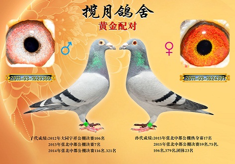 揽月鸽舍简介: 本舍2011年引进数羽种鸽,经交叉组对、放飞检验,筛选出一对黄金种鸽。 金公:2009年千羽千翔公棚决赛冠军侄子, 金母:2009年北京兰龙公棚决赛四名直女。