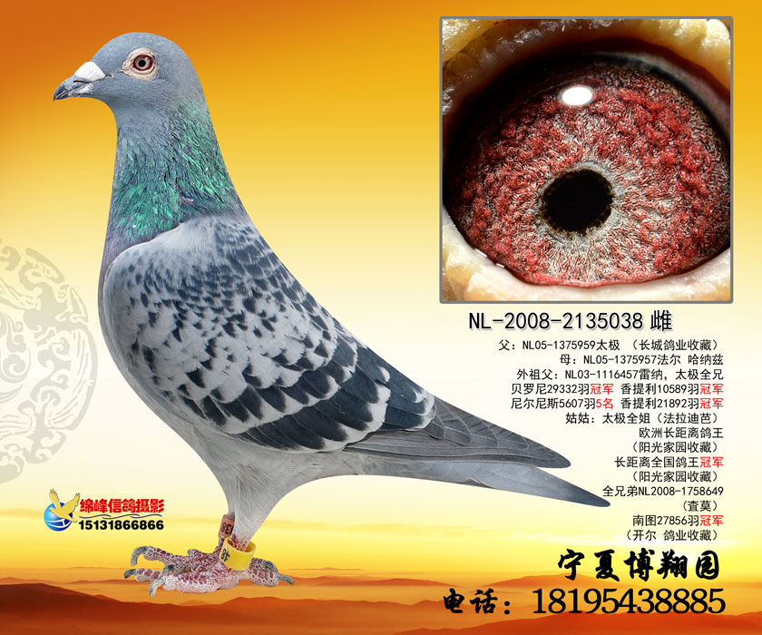 博翔牧场包括(博翔园、博翔家园、自由翱翔博翔园及博翔苑)分舍自2011年12月重建,引进比利时富希兄弟血系及霍夫肯、桑杰士、戈马利等名贵品种,各公棚鸽王及前名次鸽。现拥有种鸽60羽,自2013年开始专业公棚赛以来,全棚种鸽发挥比较稳定,取得优异成绩,赢得广大鸽友热心关注。(种鸽照片在养鸽感悟内)2016年5月从宁夏红寺堡搬迁至宁夏固原市;参赛名称:马东 马季  ……