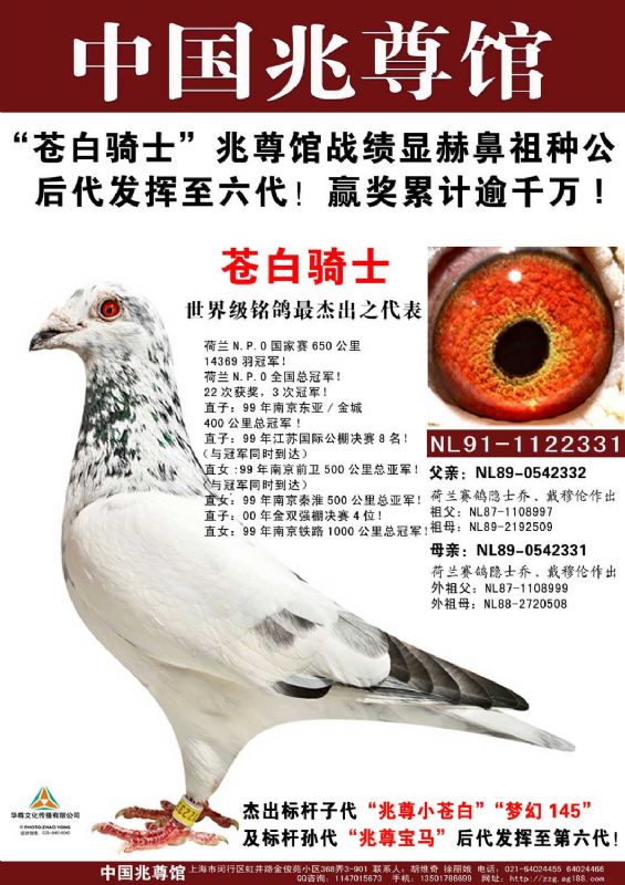 本人由于工作关系经常前往上海,在上海结识了兆尊馆胡维奇先生,为了增加本舍种鸽的实力,在兆尊馆引进了多羽高品质的苍白种鸽,经过多年的耐心培育本舍也形成了自己独特的一路苍白血系。每年公棚、特比都有高位赛绩鸽出现,支援全国各地的鸽友也频频飞出好的成绩,希望喜欢苍白血系的鸽友一起交流,共同进步……