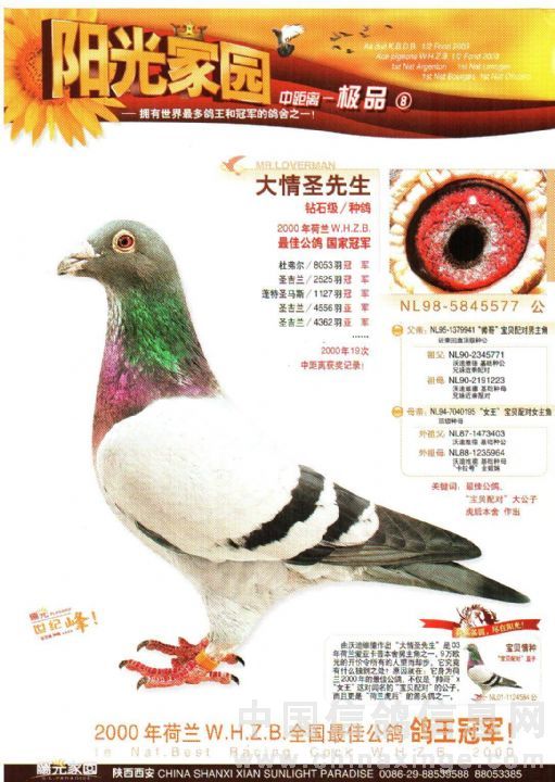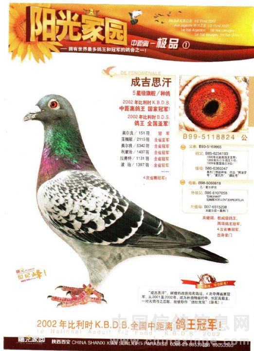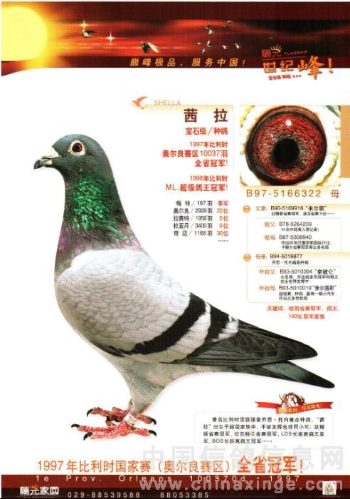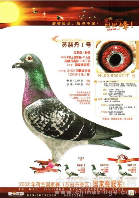 此鸽又名“绝世无双”,孙代: 08-000080灰雌 07-001302雨点雄 07-067104灰雌 07-140934黑雄将参加阳光家园拍卖会