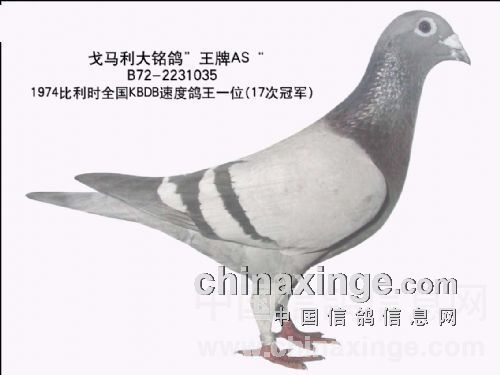 p; 戈马利种系不仅在比利时取得成功,而且在其他国家同样辉煌。德国著名赛鸽家汉士·威利里奇的“流星一号”是百分之百的“电脑”鸽系。在我国,1999年的北京爱亚卡普公棚冠军鸽,2000年辽宁千山中国国际公棚赛的冠军鸽都是直接来自“电脑”血统。