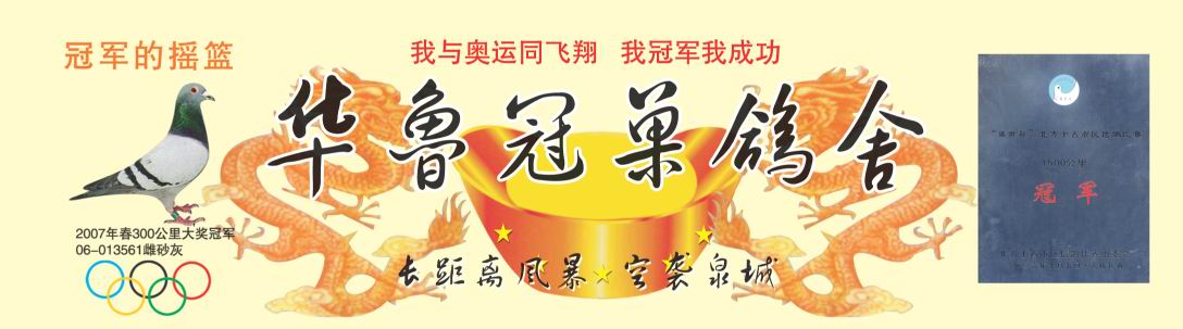 本社坐落在泉城济南中南部青龙山脚下济南大学院内,建于1990年,现有世界名鸽系--克拉克-詹森、墨利斯-赫果、多利-扬阿腾、詹森年轻019、吐尼尔、苍白骑士、林波尔、彼得-米卫、凡代克“食人者”、电脑戈马利、詹森红狐、彼达斯、马太依斯、钻石王老五。 囯血、李鸟 2006年1500公里,北方十省市团体冠军,放十羽,有效期内归五羽,迟归一羽。囯血飞出中华民族精神!我爱囯血、我爱中华,为北京奥运加油!!……