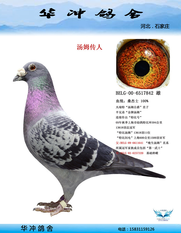本舍现有种鸽100多羽,主要血统是:詹森小火箭,大铭鸽“太阳号”直系,麦克苏珊,红狐,桑杰士。记得还是孩子时的我就对鸽子产生了浓厚的兴趣,上了中学就开始有了属于自己的鸽子,为了把鸽子养好我一直在爱鸽的道路上努力的探索着,我愿与天下真诚的鸽友互相学习共同进步,早日把我们追逐多年的爱鸽梦想画上一个完美的句号。 QQ:172777408 80390018 电话;18032422666&nb……