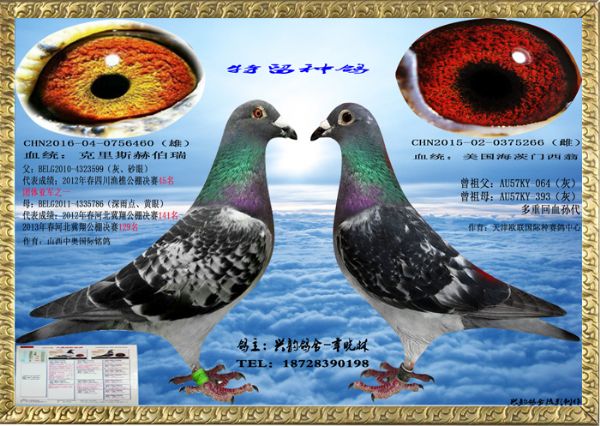 1998年开始养鸽,由于各种原因中途停养一段时间,2006年朋友协助再次起棚,目前种鸽有:上海中荣特比B组70名(上海05年最后一期信鸽杂志可查)、德国原环、比利士胡本原舍、成都凯翔公棚刘总无偿支援(公棚鸽王亚军后代,芬尼卡5000*胡本)、成都名家天府5000杨总友情支援(飞戈直孙*芬尼卡5000万羽号,成都凯翔公棚2012年秋赛决赛冠军姊妹)、安徽天龙馆李总无偿支援(芬尼卡5000高代回血)、台鸽、上海浦东特比、上海宝山特比、普赛名……