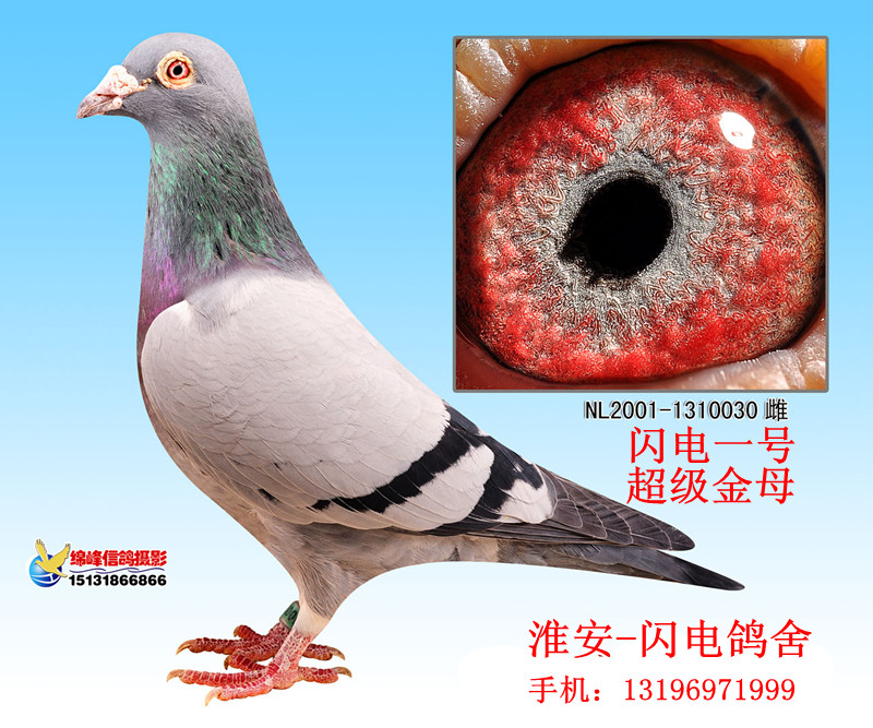 本人自幼酷爱养鸽,93年从部队退伍回来走上工作岗位后终于能如愿正式起棚养鸽,通过重金引进原环纯种詹森老白眼、慕利门、速霸龙,桑杰士等血统鸽后,在本市各级比赛中本棚及支持鸽友获得的冠军,亚军,季军等高位奖一百多项另各大公棚赛也都飞出了不俗的成绩。…… 本棚镇棚之宝;2002年连云市鸽会秘书长宋志远处重金引进超级种雌金母詹森系闪电1号NL--2001--1310030 砂 灰.直接作出200……