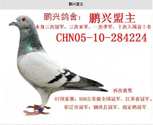 鹏兴鸽舍建于1990年至今取得了好成绩,希望广大鸽友多多支持.我舍有多种品系种赛鸽,巨无霸,马克罗森斯..万得维根:芬尼卡5000:穆利门:詹森019:贝克詹森:福洛,福袄特:詹森869=====等。 欢迎广大鸽友前来交流.……