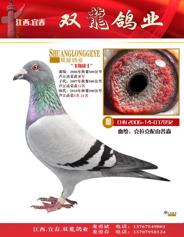 本人兄弟俩2002年重新建棚养鸽以来先后引进山普森,凡王,克拉克詹森,考夫曼,詹森麦克斯,019,桑杰士,凡戴克(所向无敌号)各种名鸽在历经十几年实战培养了各种适合山区赛线等鸽种。经过十几年的引种和培育,已育出适合丘陵和山谷盆地赛线的信鸽,已鸽种为基础、以养为关键;强训家飞为核心、以赛为目的、成败在管理;为了育出好的鸽群打造自己的品牌而努力,本鸽舍诚信以鸽交友,愿与天下鸽友相互交流鸽经,共同提高赛鸽水平。龍勇春 电话13707958124 龍勇斌13767549801