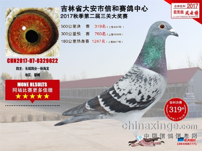 本舍主血 德国系 詹森019 红狐 麦克斯 卡罗 凡龙 胡本 克拉克 等等……………… 爱情自由在他们之间完美演绎着,空中鸽子的血液中,淌着我所见过最美丽的飞翔。一个爱鸽的人不一定懂鸽,但一个懂鸽的人,却一定深爱着这些蓝天精灵,我确信如果没有优秀的种鸽群体,就很难立足不败之地,更相信只有不断的锐意进取、不断加强种鸽队伍及培育才是唯一的出路。本人坚信唯有成绩才真正具有独到的说服力,愿在这里与广大鸽友交流赛鸽技艺,使我们共同得以进步,取得更优异的成绩,愿与大家分享胜利的喜悦……………………………
