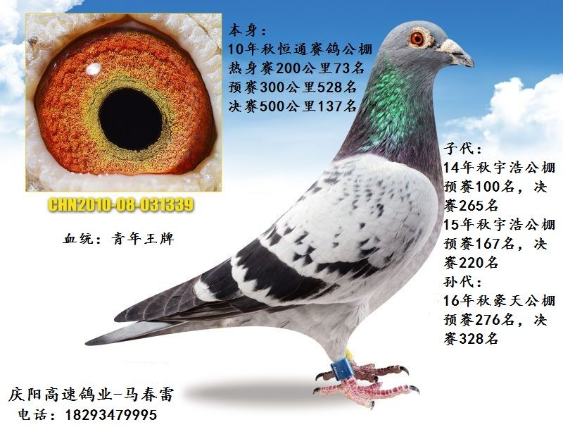 在此:特别感谢本市鸽友马万虎先生,何荣先生,及哈尔滨鸽友吕跃臣先生,感谢三位大哥对本人的大力支持与帮助。