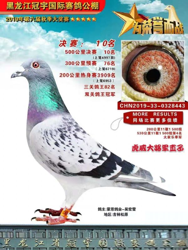 重实战是我追求的目标,黄金配对第一是务实。品系是信鸽在长期竞翔中定向作育优化组合、繁衍发展的结晶。重血、重眼、重体是本人选择优良赛鸽的一贯作风。本鸽舍在长期培育优化后在处形上基本上都一个模式,眼沙以黄眼为主。雌雄大小体形适中,羽质柔软光亮,眼砂层次分明,骨骼硬朗,上浮力好,后腰滚圆。手感极佳,耐力超强。本舍主要血统:大将军.苍白骑士.胡本.东方不败.帝卢速霸龙. 盖比.......