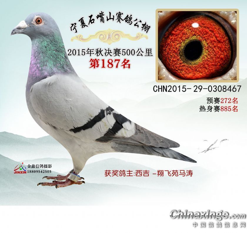 《西吉翔飞苑》新建于2013年,是我的个人爱好天地,主要以詹森,山普森/胡本,桑杰士/戈马利,台鸽和苍白系等。早先08年起棚,由于条件的限制,就经常以个人爱好在周边放玩/////////……2011年参加了固原市鸽会,很高兴能和更多的鸽友相识/学习/探经/////由于不断的学习和品系改良,终于在2013年首届参加‘盐池翔奥公棚’秋赛的506公里决赛获得第87名的好成绩。2014年第二届参加‘盐池翔奧公棚’秋赛的506公里决赛获得第91名的好成 绩。2015年参加‘宁夏黄河公棚 ’秋赛502公里决赛获得第117名。2015年参加‘宁夏石嘴山公棚 ’秋赛500公里决赛获得第187名的好成绩。 2015年秋赛还在协会放的500公里比赛中获得64名和67名的好成绩。 我人生最大快乐也莫过于自己的酷爱了,从小喜欢鸽子的我,至今也有十来年的养鸽历程了吧/在这期间不只有过多少次的快乐和心酸,但我很高兴今天能借助[鸽友通]和更多的鸽友们相互学习和探讨鸽经,望大家多多支持/////我的QQ;123933471//
