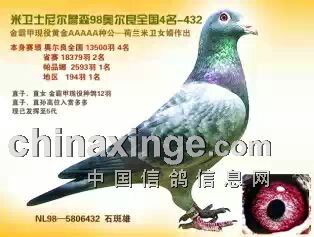 以上信息由鸽舍自行提供,该鸽舍负责信息内容的真实性、准确性和合法性。