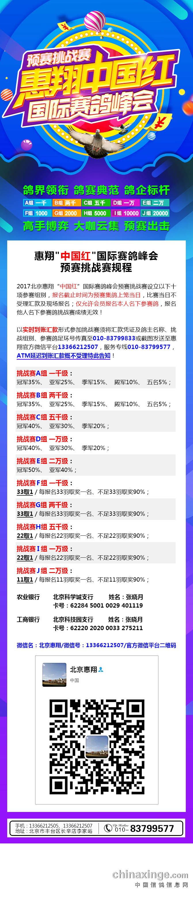 2017北京惠翔中国红国际赛鸽峰会预赛挑战赛规程
