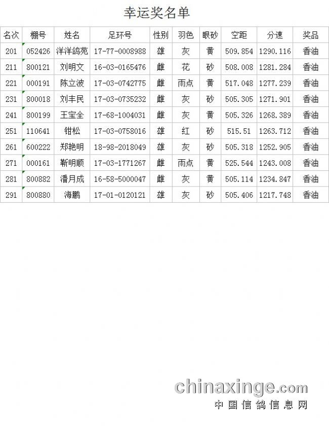 500公里幸运奖名单