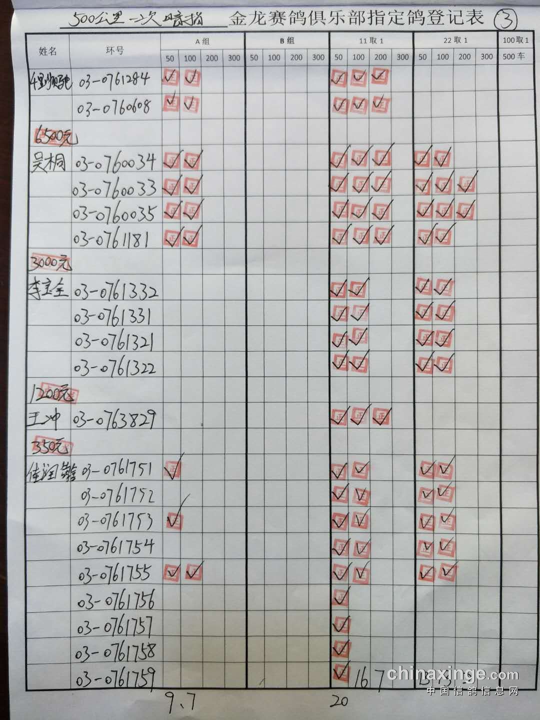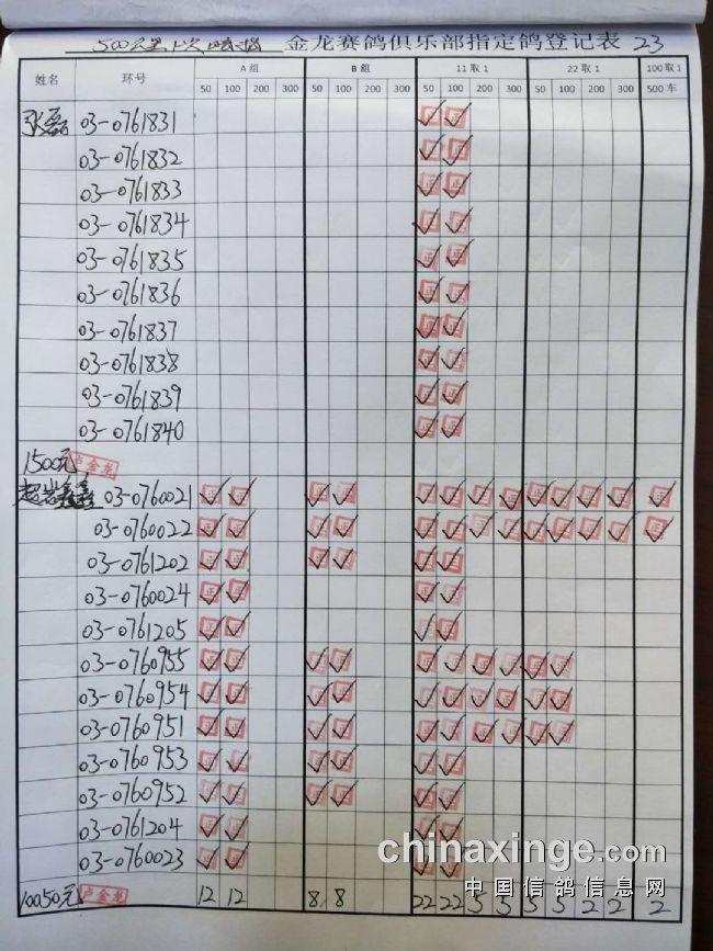 鸽舍赛绩