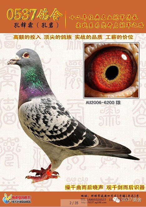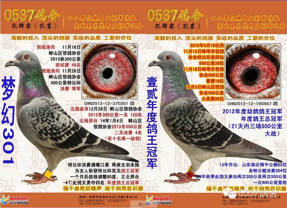在现在高水平的比赛中,一个鸽舍两年内出现这么优秀的两羽鸽王实属不易,本人将他俩配在一起,也是为了鸽王的优越能力得以遗传,他们的后代已经送到北京惠翔 BOB 湖北金沙去比赛,我想只有最高级别的比赛,才能让最好的鸽子得到最佳的发挥!!!