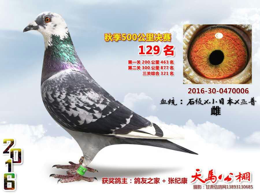 16年首次参加甘肃天马公棚,参赛3羽,决赛获得129名。