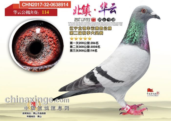 2017年本舍做出,锦州黑山王彪选送北镇华云公棚获奖鸽: