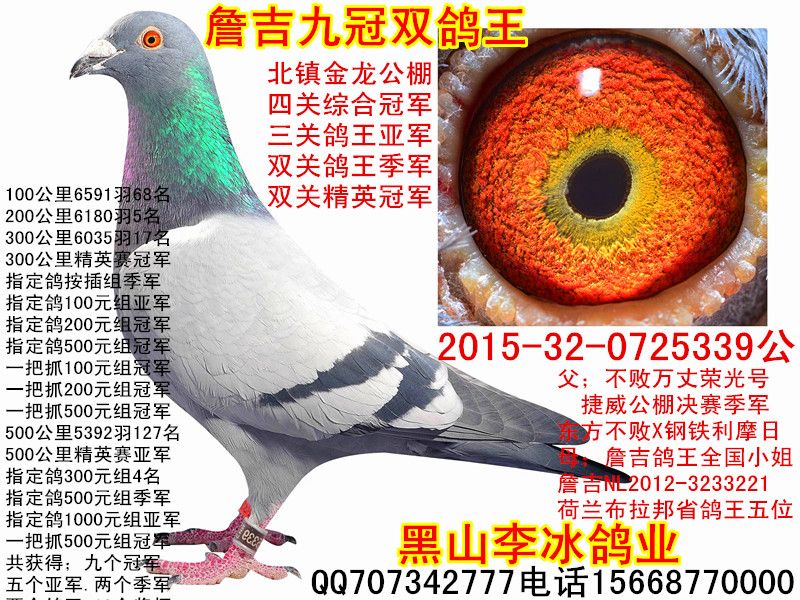 黑山李冰鸽业鸽舍17间,主力种鸽48对,欧洲进口公棚决赛得奖鸽几十羽,主力种鸽:欧洲进口最佳基特尔得奖鸽20羽,比利时迪克.凡戴克原舍亚军,荷兰爱亚卡普原舍得奖鸽,凡登布克基特尔。黑山李冰鸽业联系电话;15668770000,(微信同号)快手:黑山李冰鸽业广交天下鸽友,共同发展,赢钱才是硬道理!黑山李冰鸽舍座右铭;人做事,天在看,善恶终有报!……