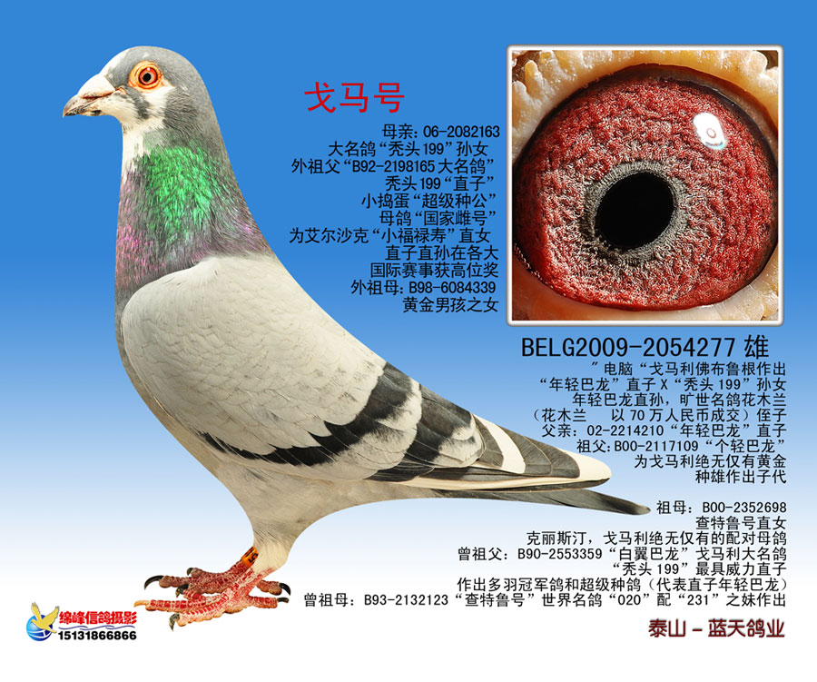 泰山蓝天鸽业座落于雄伟的泰山西部肥城,本鸽业于2003年由秦胜恩、宋成国、齐军联合成立,由秦胜恩旗下利源公司和盛达公司两企业赞助,先后重金引进比利时、荷兰原环冠军铭鸽及BOB等大公棚前名次鸽多羽,并得到济南鄂厚荣老师、韩强老师的大力支持与帮助。 本鸽业于2008年开始打公棚,2008年在南京五台山公棚预赛中获得23名。2009年北京飙友公棚83名。支援鸽友的鸽子在公棚,协会都有突出赛……