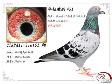 本人热爱信鸽事业,对信鸽有种执着的热情。养鸽多年来得到了朋友的大力支持,本棚现拥有一支血统纯正、品质好、质量优秀的种鸽. 主要品系有明月詹森,明月桑杰士,贝克詹森,克拉克05,威廉迪布恩等品系.自从有了这些种鸽以后赛绩有了长足的进步,我愿意与广大鸽友共同发展共同进步.……