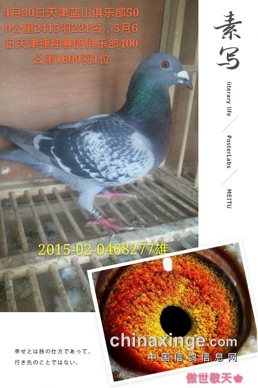 本舍在日益激烈的竞争中,勇于拼搏取得一点赛绩,09春比赛获得3,5名及团体6名的成绩,12秋天津火车头400公里百事大吉杯4名 本舍拥有瓦特,桑杰士,秃头,莫里斯。卡萨及凡龙;乔斯佛卡门,(潘特)马克,罗森斯等品系。 愿和广大鸽友交流。连续2年参赛公棚均取得优异成绩,说明血统过硬。2010年太玉园国际公棚167名只交一羽,2011年太玉园国际公棚95名但是大羽数和恶劣天气,说明名驹皆尤悍马生,不用扬鞭自奋蹄,请鸽友期待更优异的赛绩。。。。