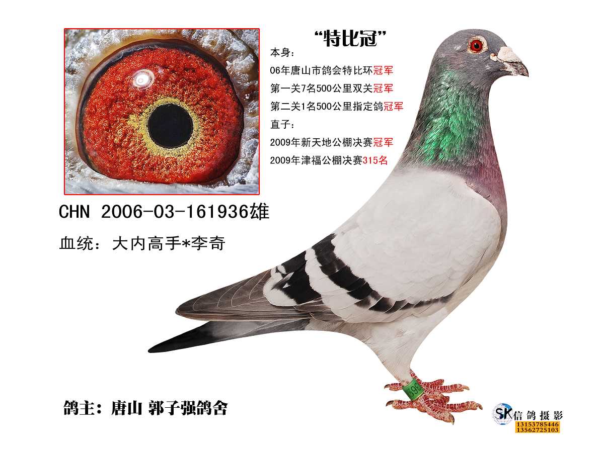 2006年 市鸽会特比环 一关500公里 7 名 二关500公里 1 名 双关 冠军 指定鸽冠军 2008年 津福公棚 400公里 5 名 500公里5 名同一羽 2009年 津福公棚 300公里28 名 400公里76名同一羽 2009年 新天地公棚 500公里 冠军 2009年 尼尔森公棚 500公里 亚军加强赛