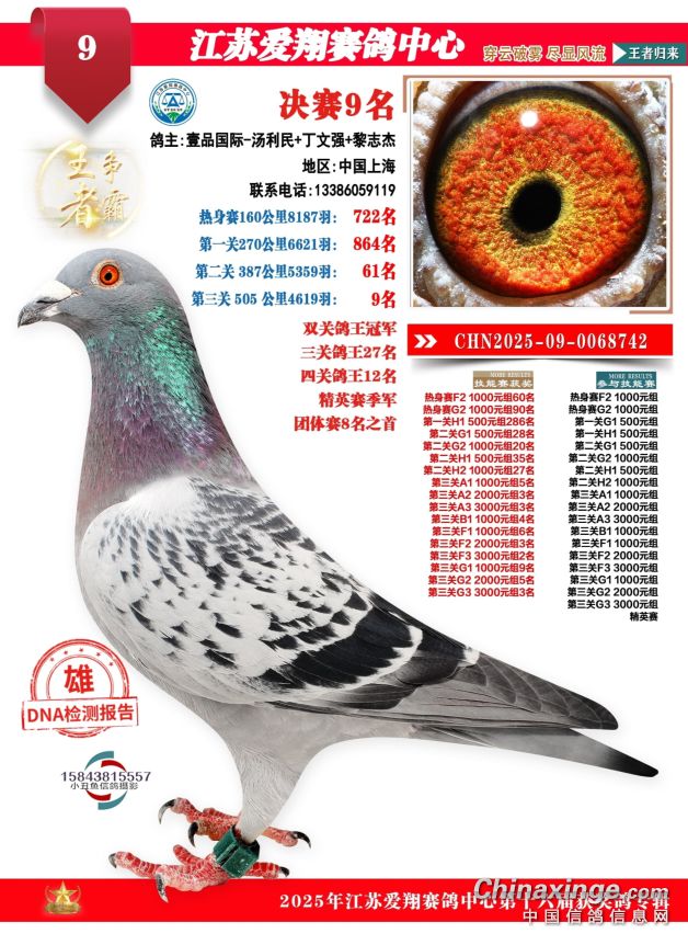 搏搏壹号CTS竞技乐园星耀队2025年秋季鸽王公开赛决赛前九位欣赏。
