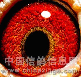 | 个人推断:笔者没有再进行房水的进一步深入研究,目前以为:信鸽的房水因染色体所含色素(基因遗传学)不同,基本为两种基调,一为黑色、一为黄色。黄色的大多黄眼鸽、黑色的为牛眼鸽、没有的为砂眼鸽,其中真正纯黑、纯黄的基本不存在,大多为杂合体显现中和色素,使鸽眼明暗色素斑斓多变。黑基调的房水通透性高、组织液浓度高,器官组织细胞一般都收缩较小;黄基调的次之,色素少的砂眼因房水由于浓度最低,使得器官组织也发育的最大(组织吸收原理),肌肉较强壮。以上推断的依据是,大凡牛眼信鸽,体质强壮且眼砂粗者少,大多为细砂;黄眼鸽虽粗砂、细砂都有,但以细砂居多;砂眼鸽大多体质健壮、眼砂大多为粗砂。当然与上相反的现象一定存在,它们要不为其中佼佼者,就是其中羸弱者,因为育种繁殖总会有各种变异,但好鸽总以中庸的大多数存在。 |