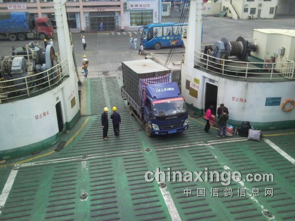11点3O分到码头,14点24分鸽车开上信海19号。