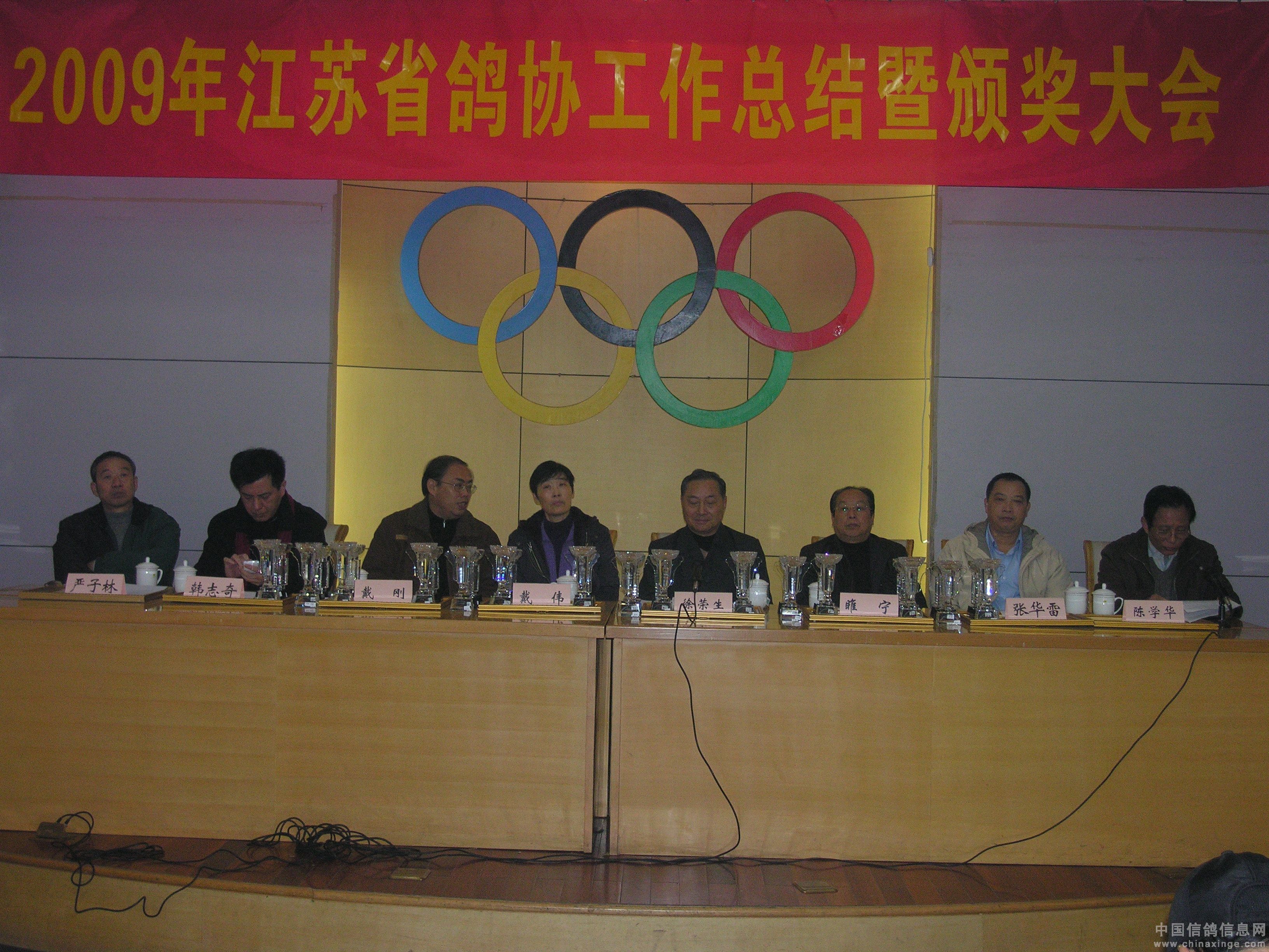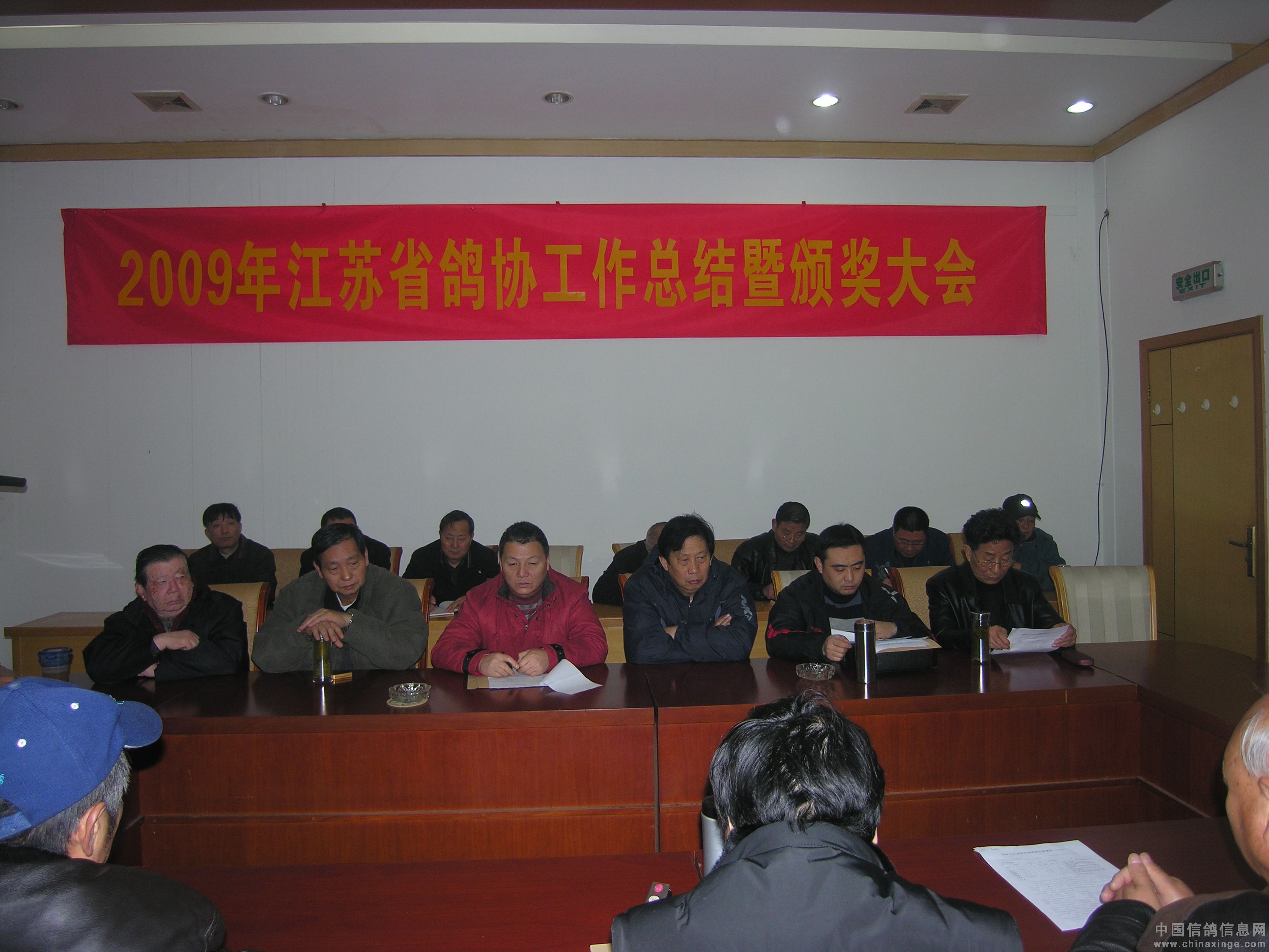 12月12日至13日,江苏省信鸽协会在南京举办2009年鸽协工作总结暨颁奖大会,江苏省体育局副巡视员、中鸽协副主席戴伟,江苏省体育总会秘书长睢宁,江苏省社体中心主任戴刚,以及省鸽协领导班子、各省辖市鸽协负责人共40余人出席会议,省鸽协会长徐荣生主持了会议。