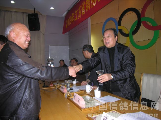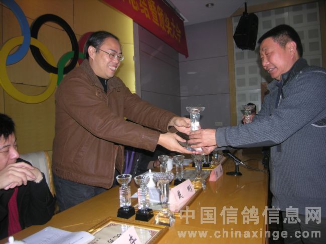 会议的最后一项议程是省体育局、省体育总会、省社体中心等领导向各单位颁发奖杯和获奖证书,这是对一年来全省基层信鸽工作的检阅,更是在即将迈入21世纪第二个十年前夕,对进一步搞好全省信鸽工作的一次很好鞭策。本次会议时间紧凑、内容丰富,为2009年的全省信鸽工作画上了圆满的句号。