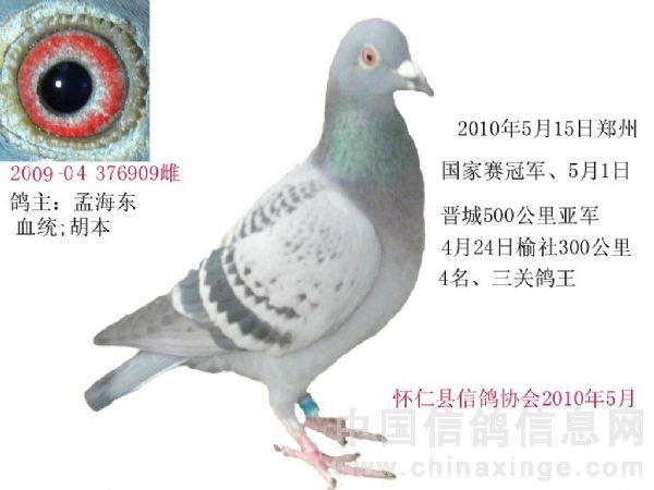 山西怀仁县信鸽协会郑州国家赛5月15日560公里成绩单及前三名鸽主图片  冠军得主孟海东
