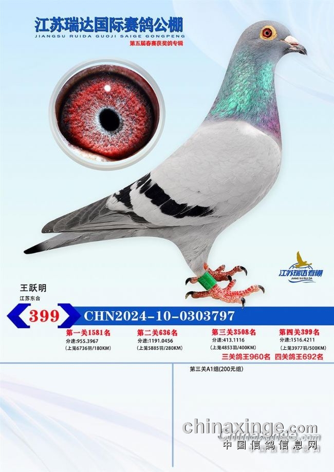 年江苏瑞达国际赛鸽公棚春棚决赛获