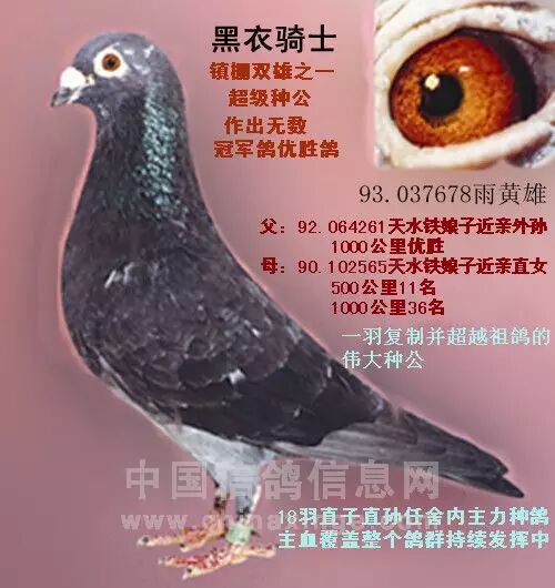 小黑衣骑士配不同雌作出一批优胜鸽。