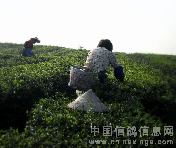 2.远处的采茶工人正在工作。