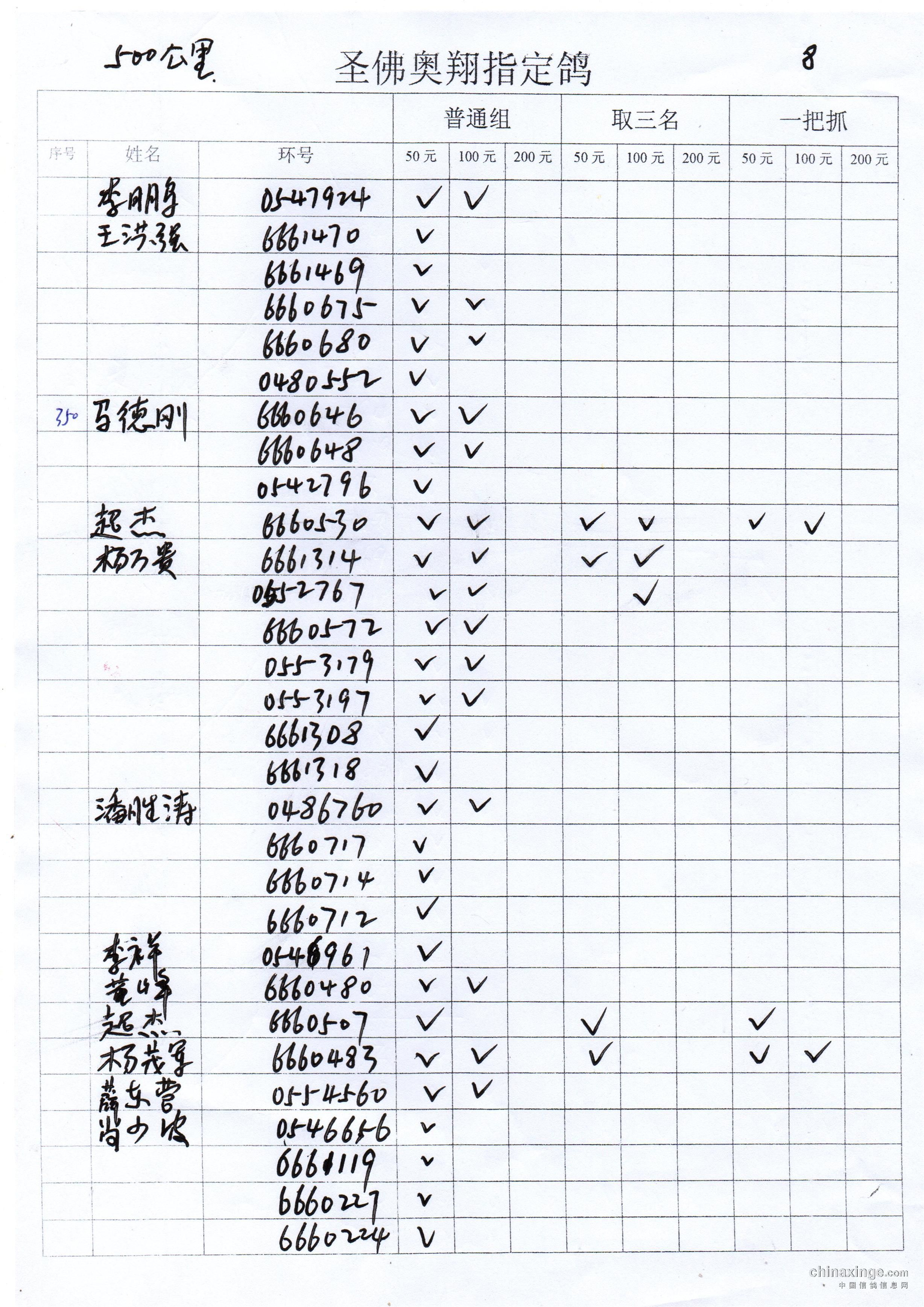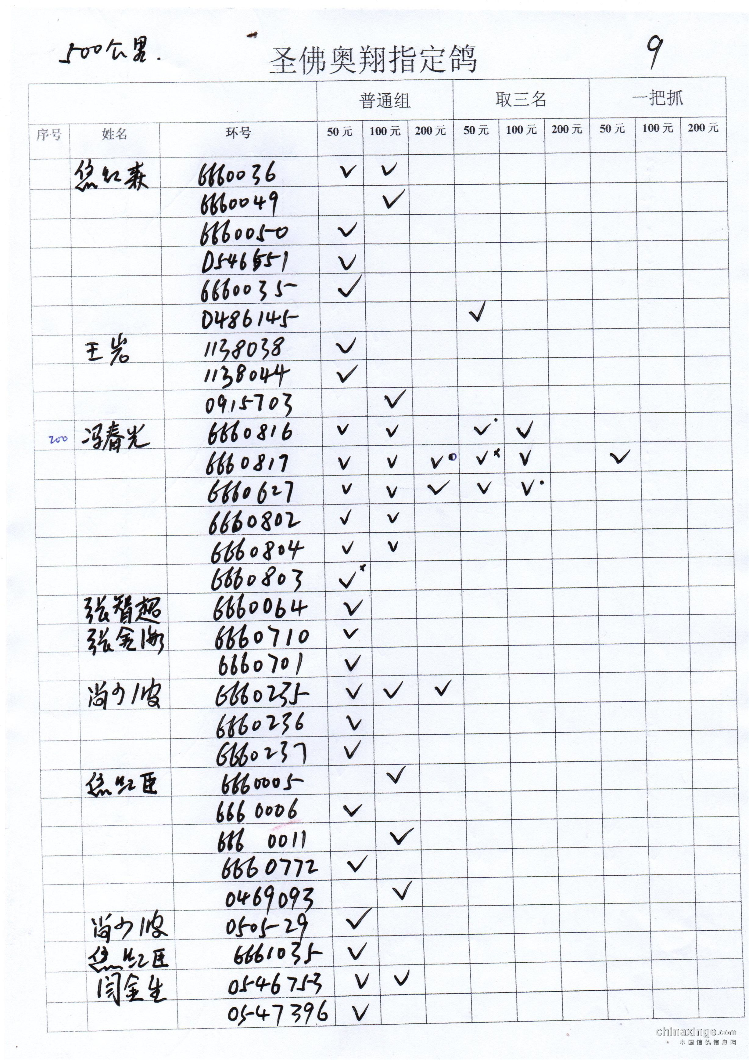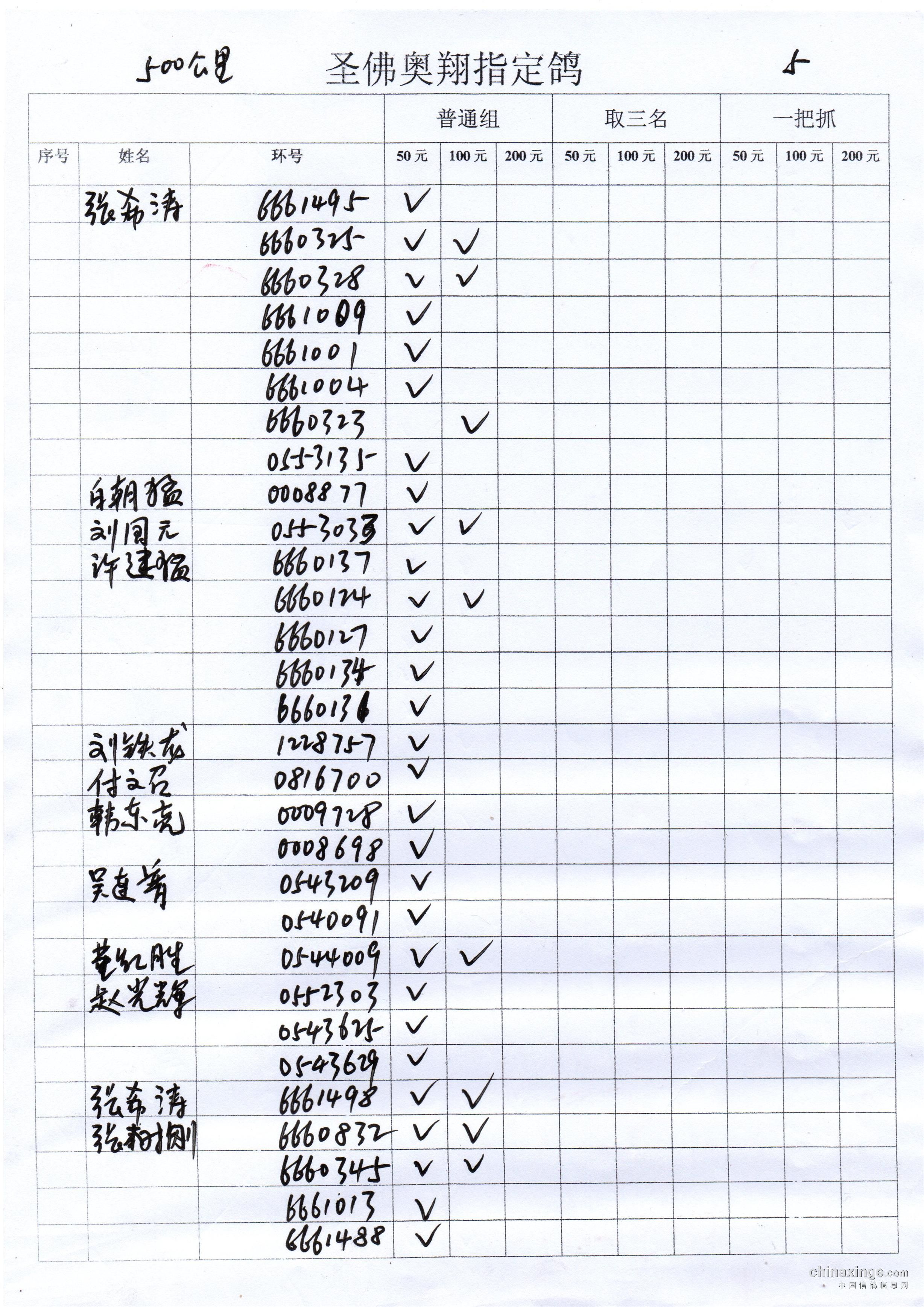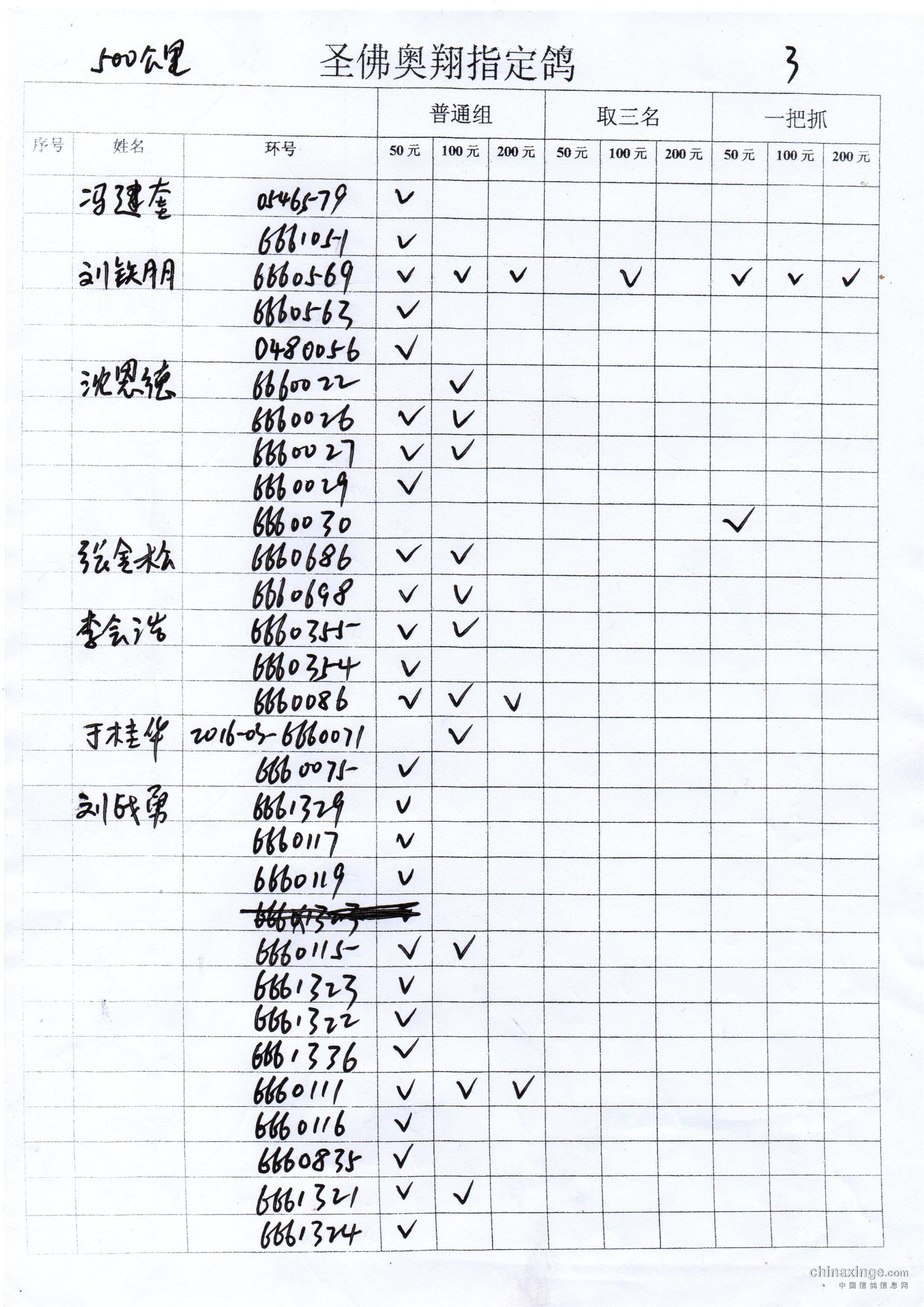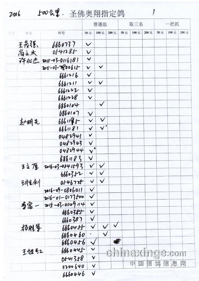 2016秋季(新)500公里奥翔俱乐部指定鸽名单