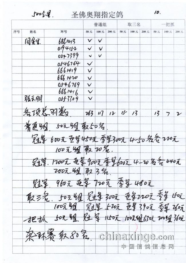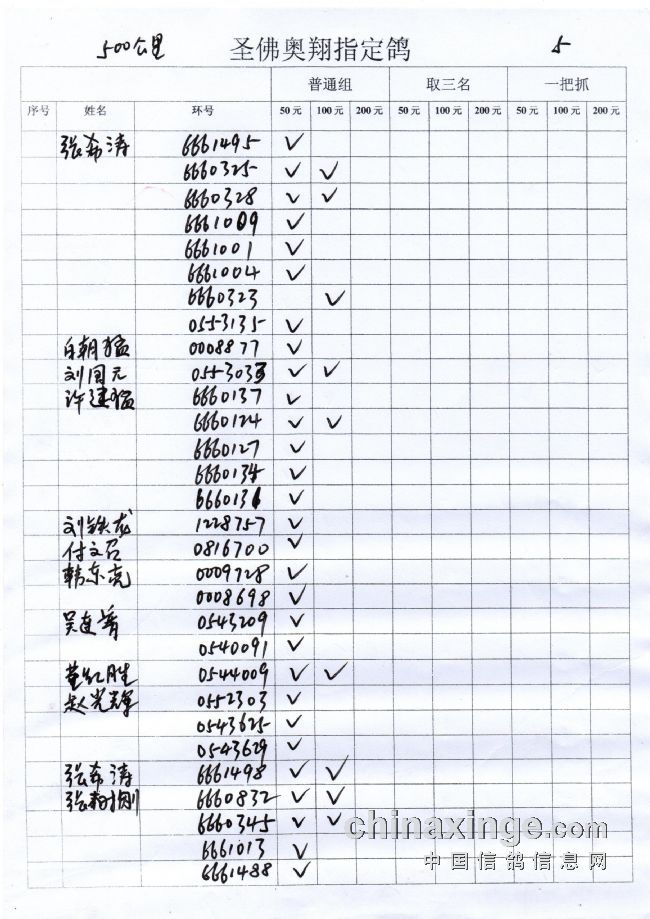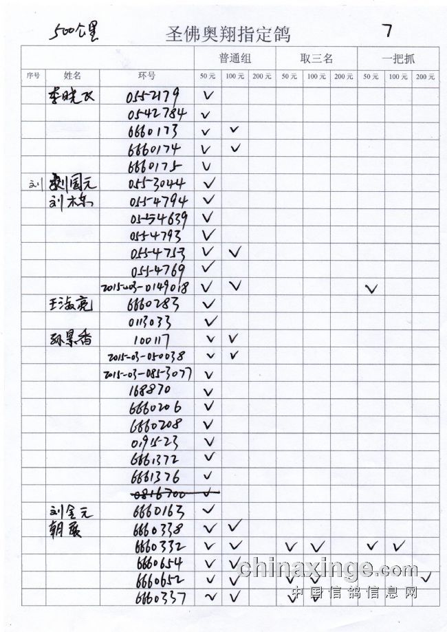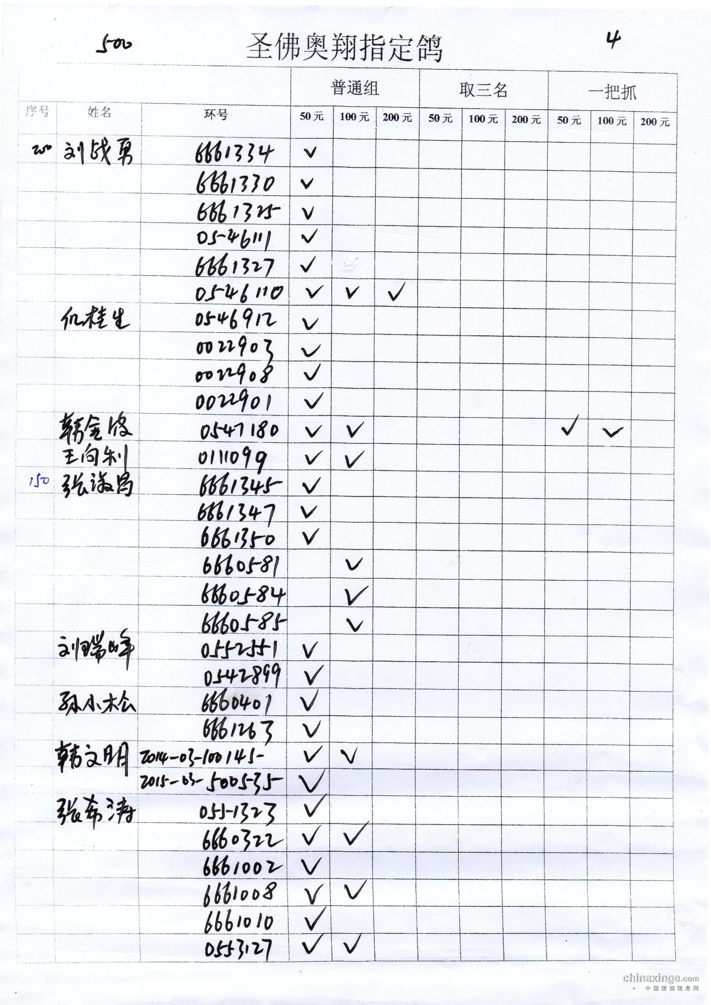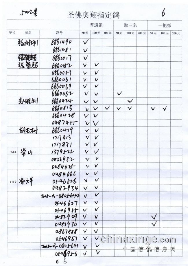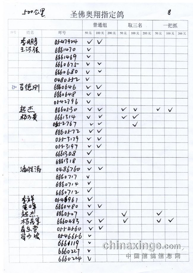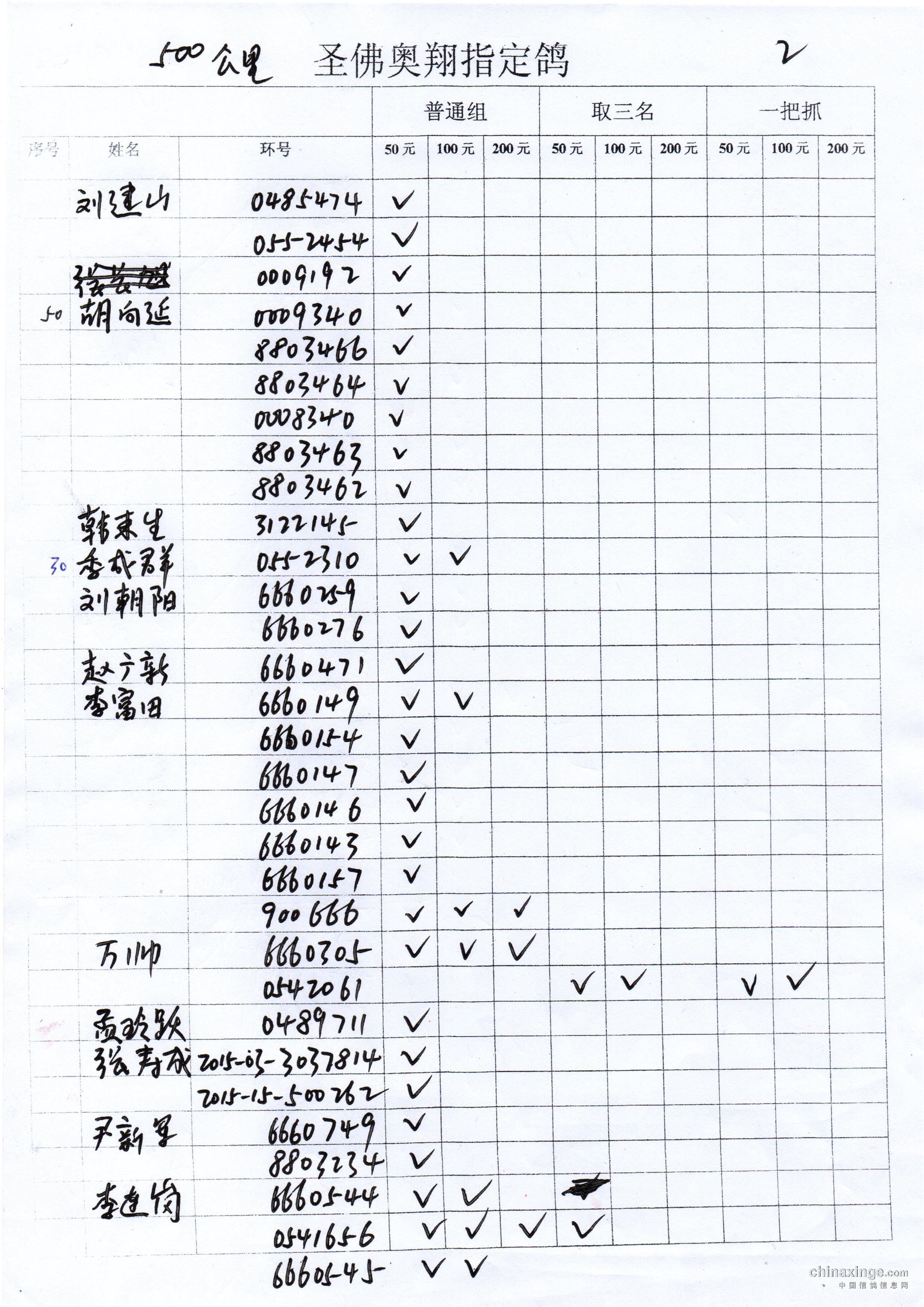 2016秋季(新)500公里奥翔俱乐部指定鸽名单