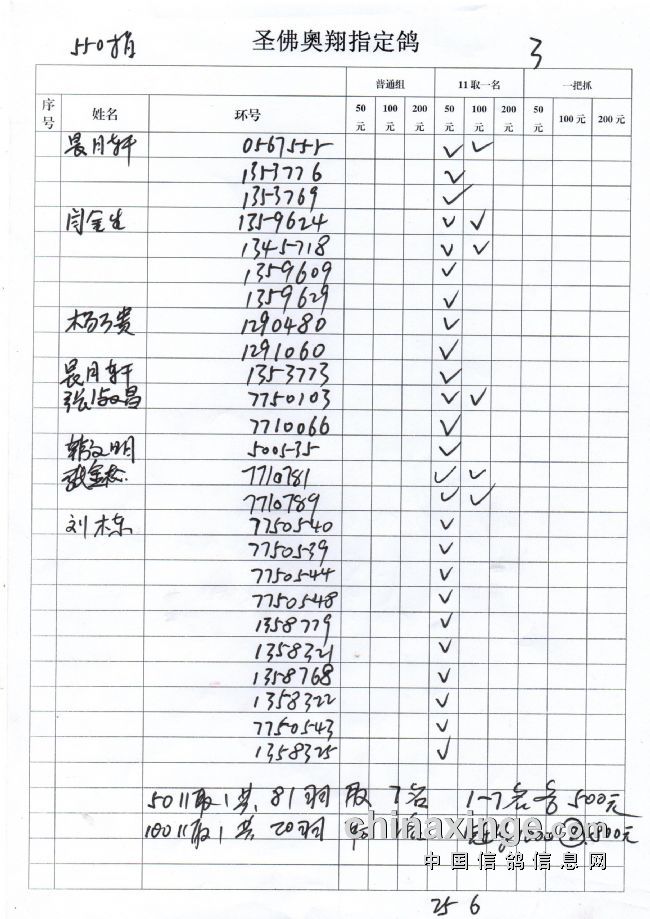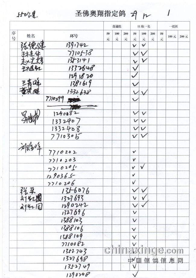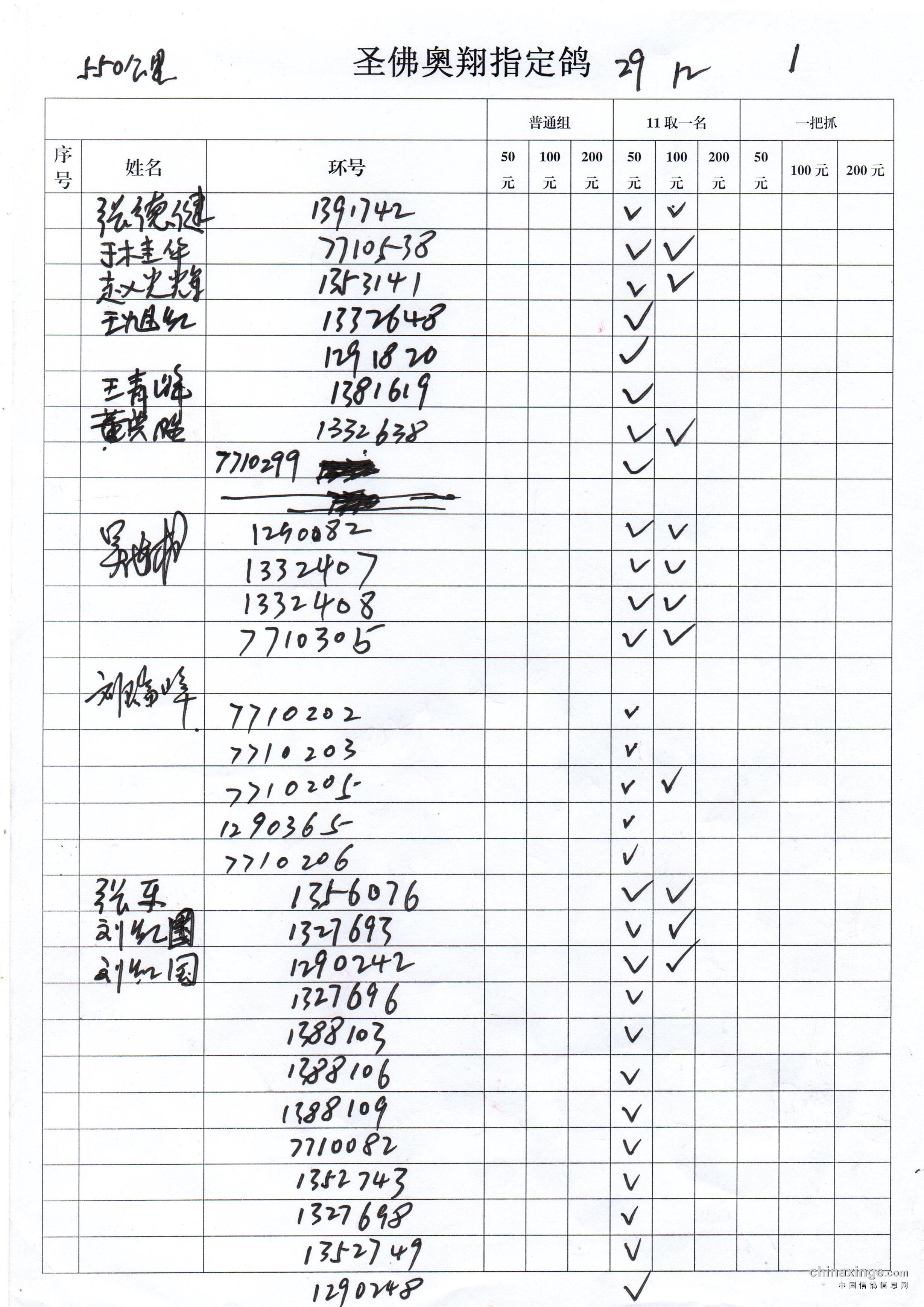 圣佛奥翔2019秋季200公里指定鸽名单