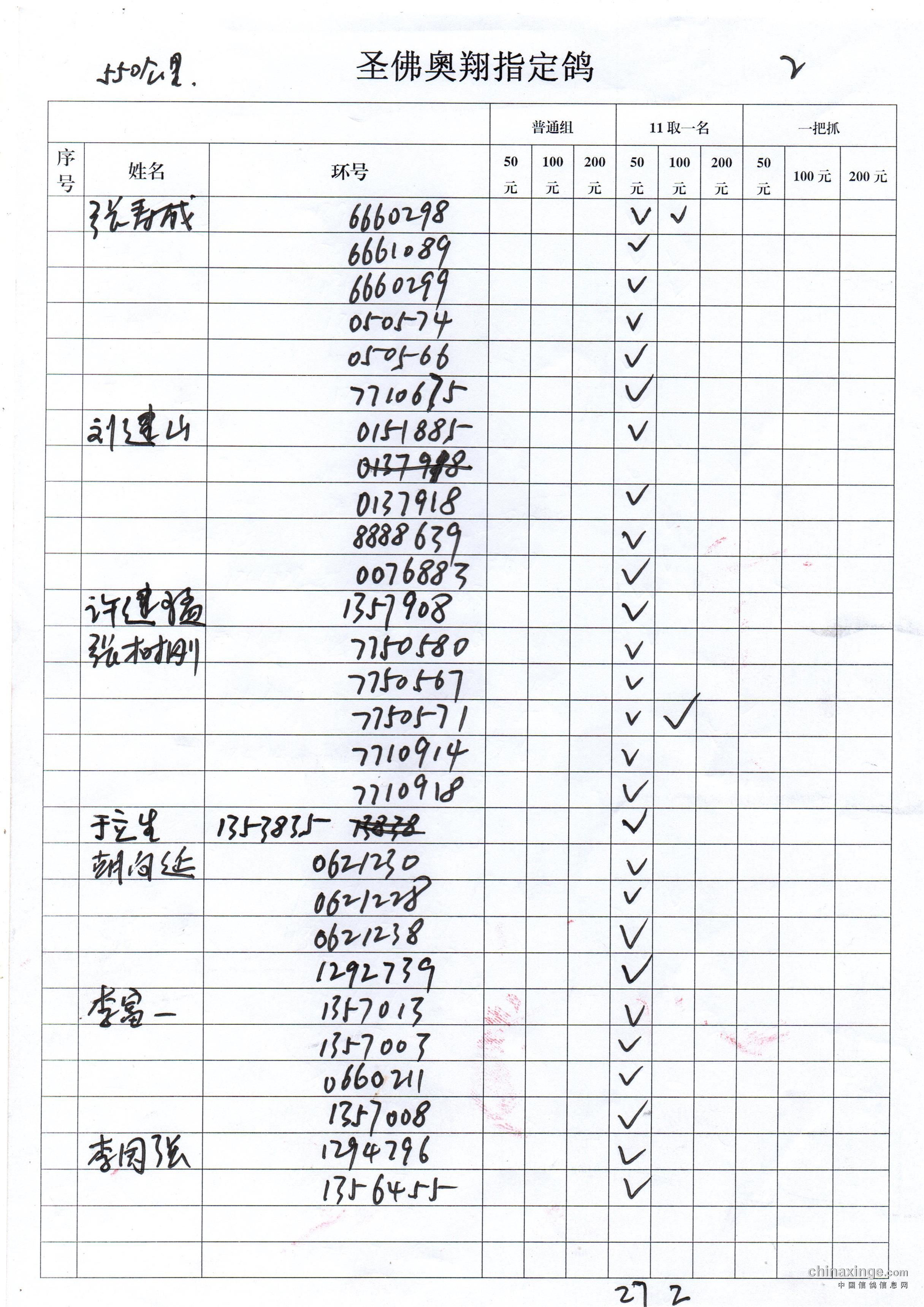 2017秋季圣佛奥翔600公里指定鸽名单