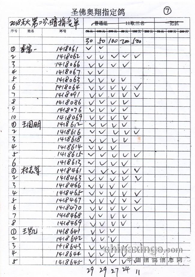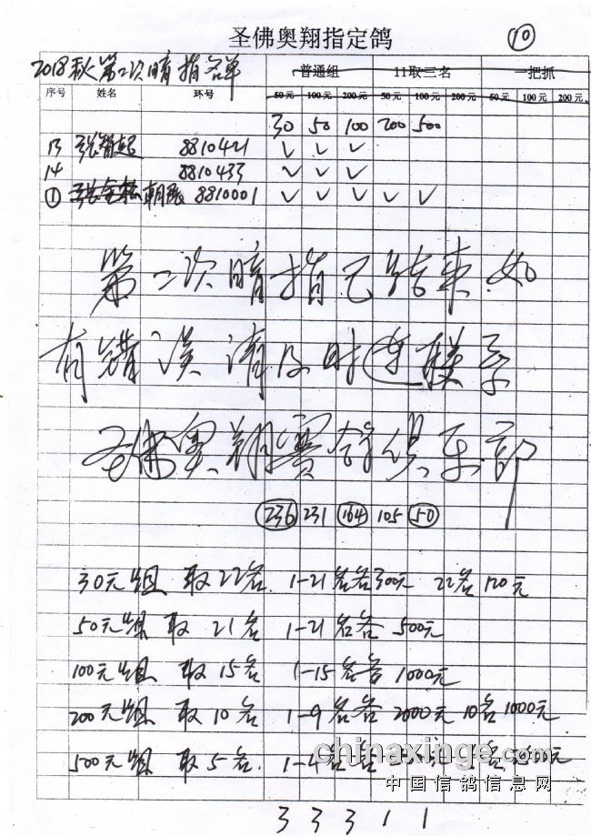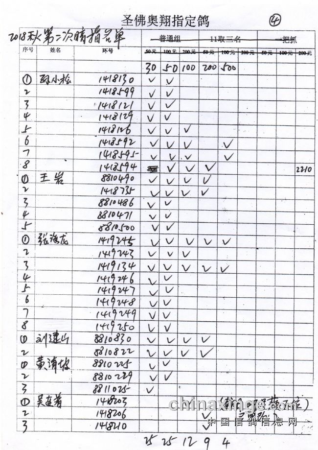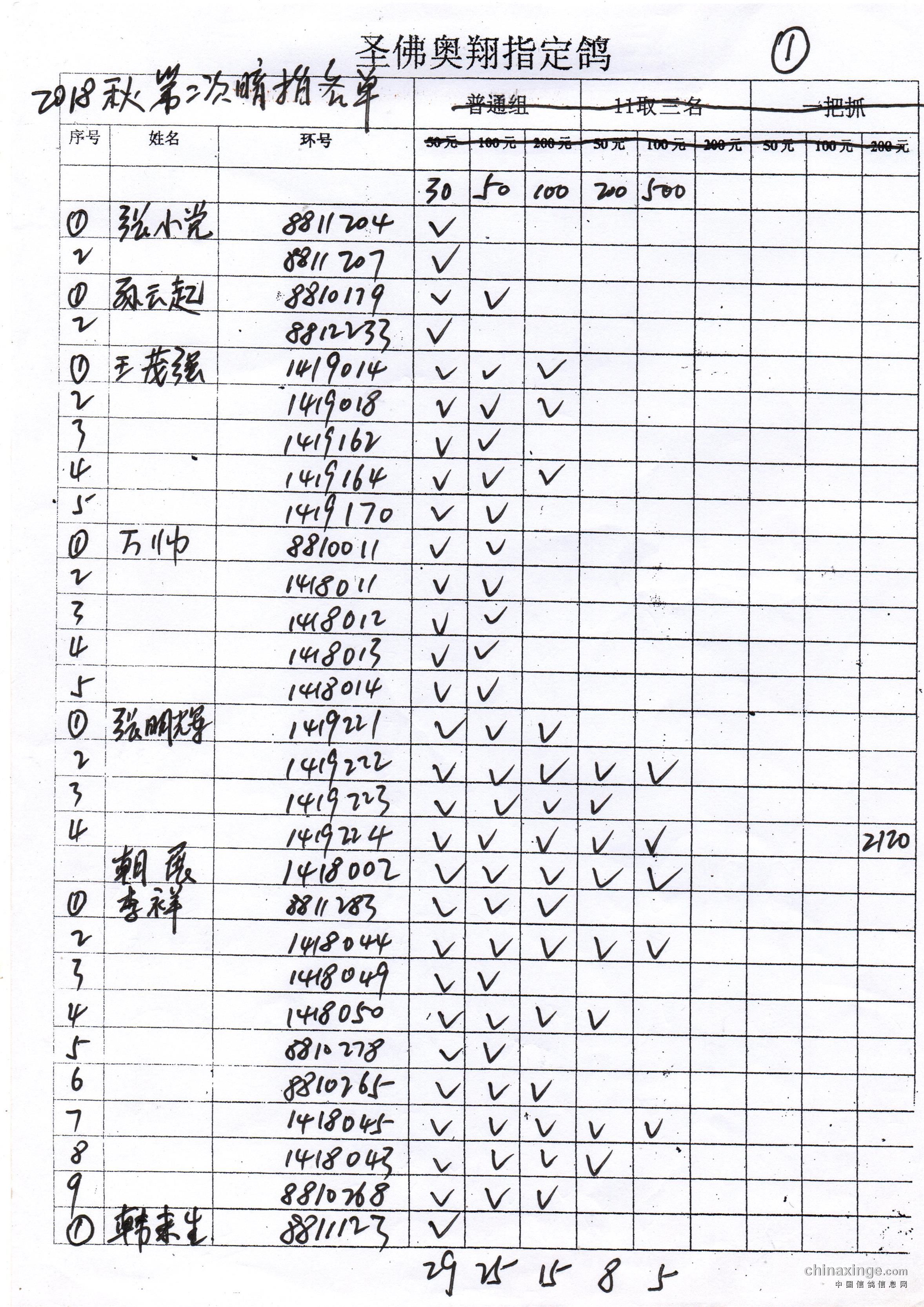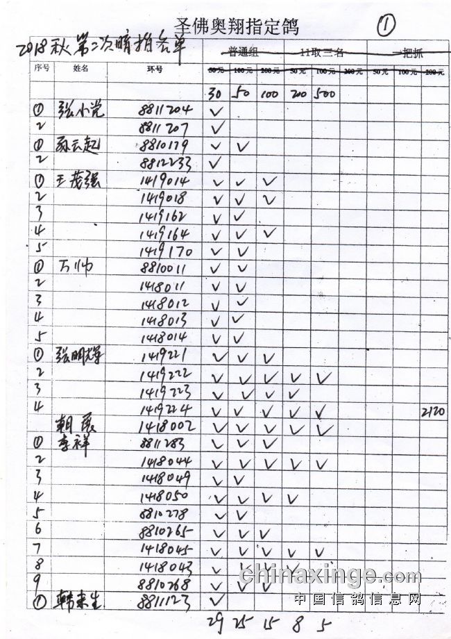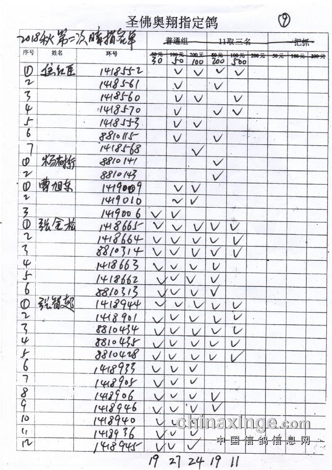 圣佛奥翔2019秋季200公里指定鸽名单