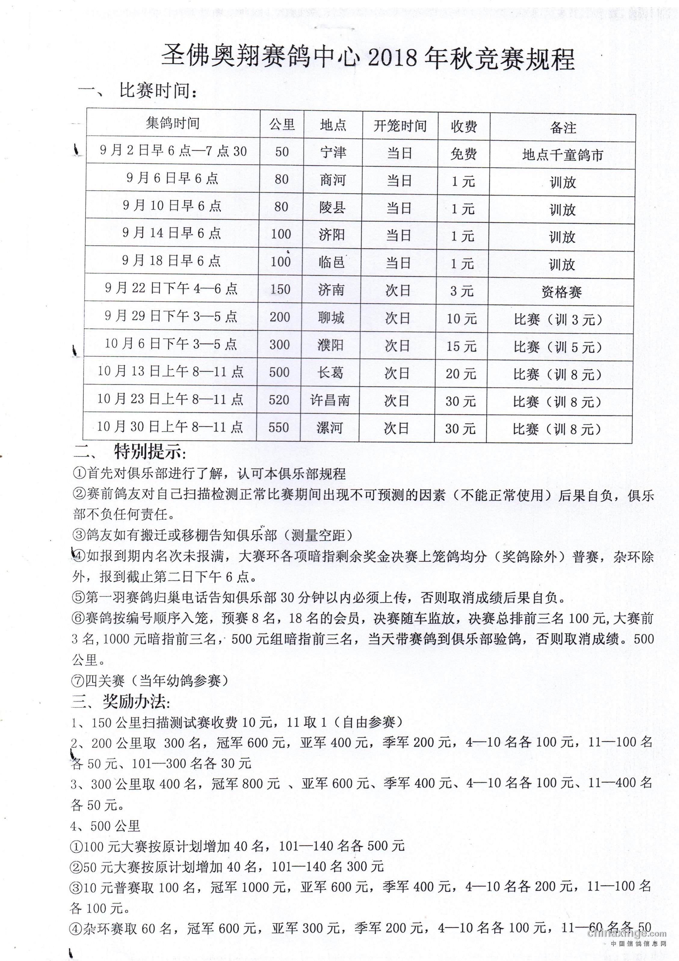 圣佛奥翔2019秋季200公里指定鸽名单