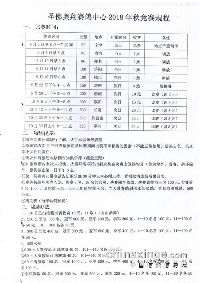 圣佛奥翔2018年秋季竞赛规程