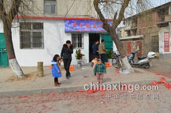 贺:“中牟鸽友之家”开业大吉—中牟县信鸽理事会。 最近中牟县这样一个小小的信鸽理事会真是喜事不断,在大家即将迎来电子扫描时代之际,理事会会员胡刚强(13643863625)看准商机,果断出手。在离信鸽市场不足1公里的黄金地段开设了中牟县第一家专业的信鸽商店,给中牟的同好们带来了方便。 二月二是个龙抬头的好日子,“中牟鸽友之家”的开业给中牟县信鸽理事会的会员带来方便的同时,也给中牟鸽界注入了新的活力、新的希望,开业之际中牟信鸽理事会的领导、各位鸽友也带来了衷心的祝贺。愿中牟信鸽事业蒸蒸日上,愿所有的中牟信鸽理事会会员在2014年秋赛的战场花开遍地,马上得冠军、马上有钱......