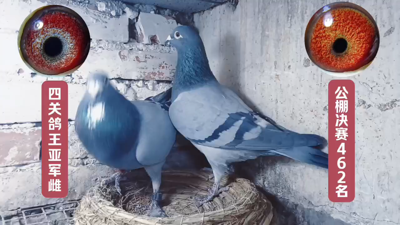 【2026年配对三】雄鸽超霸194瓦灰砂眼来自北京三宝鸽舍,是三宝鸽舍重点种公超霸396的外甥配396女儿近亲作出(外甥配姨),在我家这几年一直有发挥。雌鸽是白爪雄配公棚决赛16名出的瓦灰黄眼106,自身获公棚加关赛18名,子孙代也都有获奖。